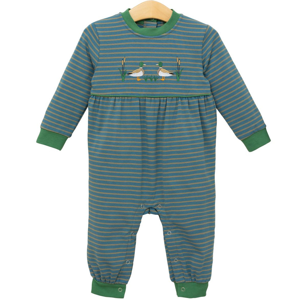 Christmas Toile and Stripe Boys Channing Classic Long sleeve Bubble