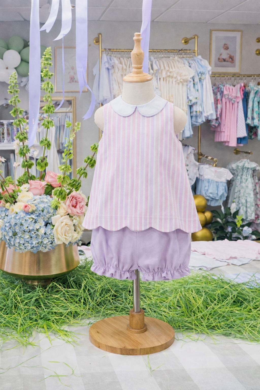 Seaside Stripe Charlotte Scalloped Set in Pink & Purple