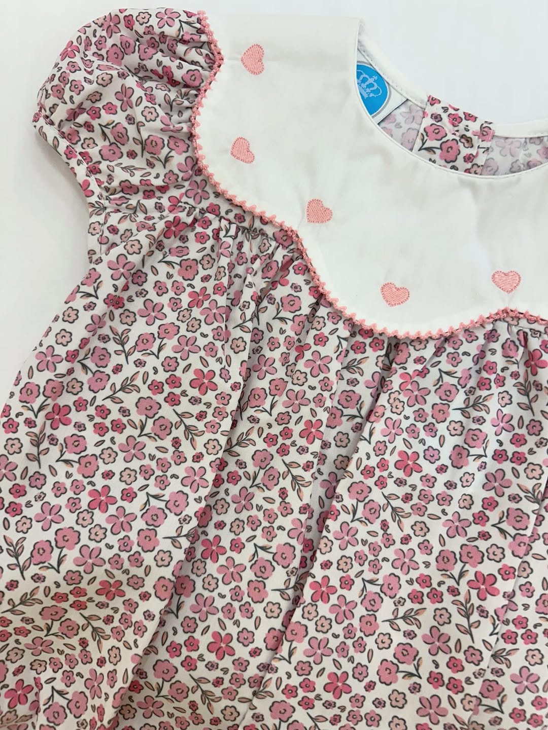 Charlotte Floral Embroidered Heart Scallop Collar Dress in Pink