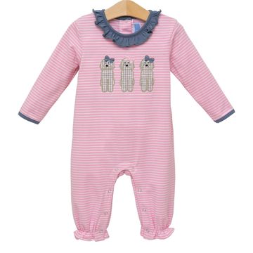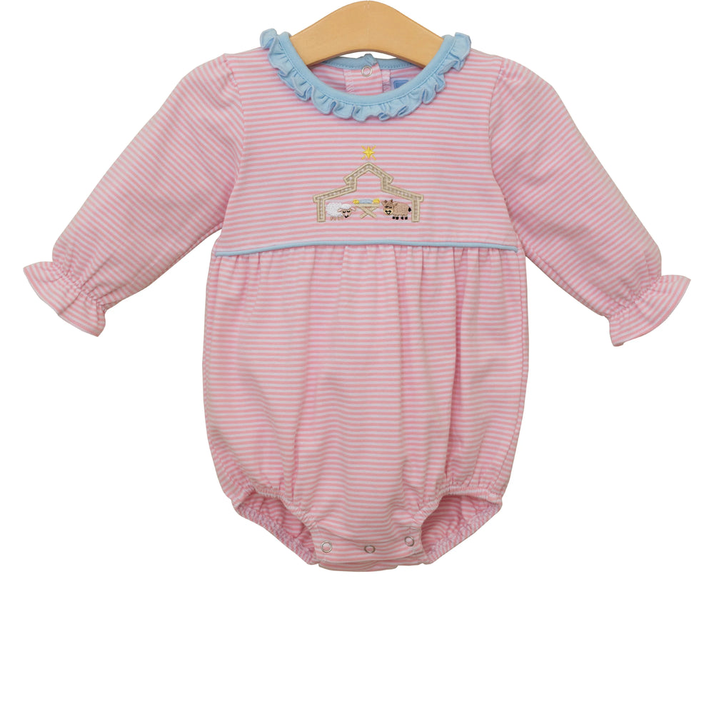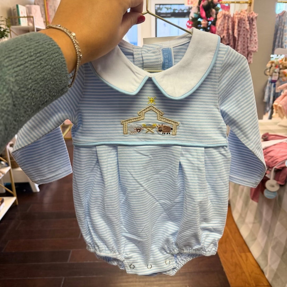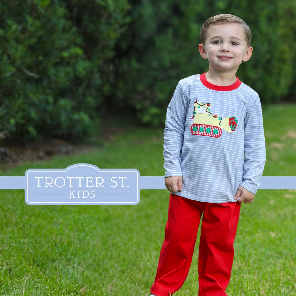 Christmas Toile and Stripe Boys Channing Classic Long sleeve Bubble