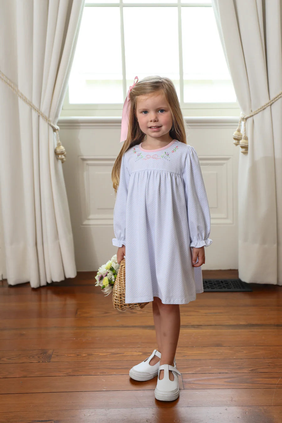 Flowers & Bows Embroidered Polka Dot Bubble in Blue